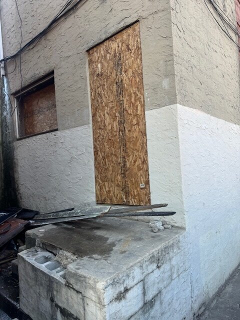 •Property is boarded up