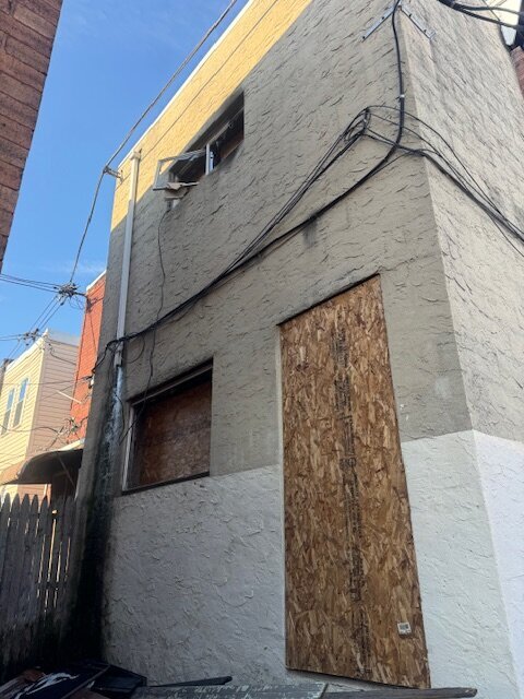 •No backyard. No major damage to the back foundation of the property