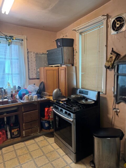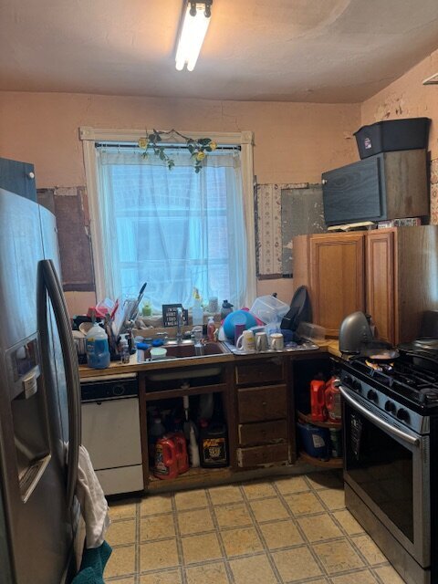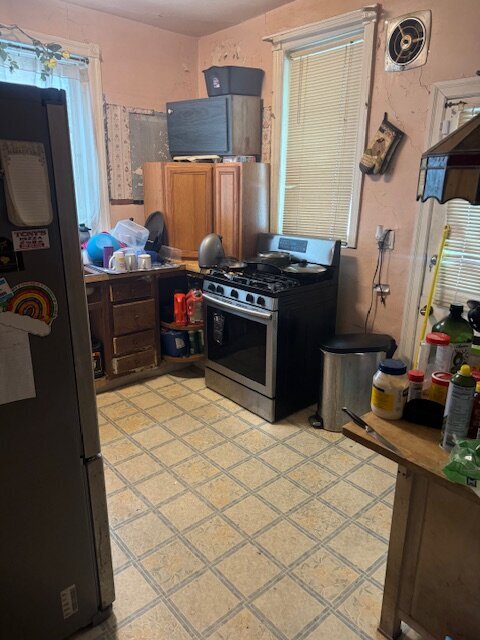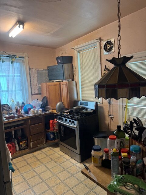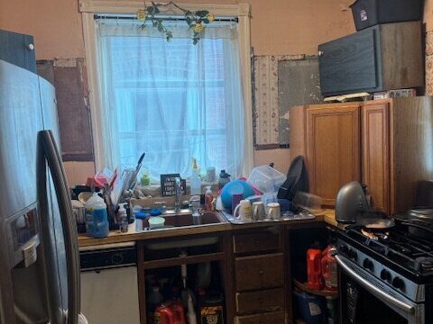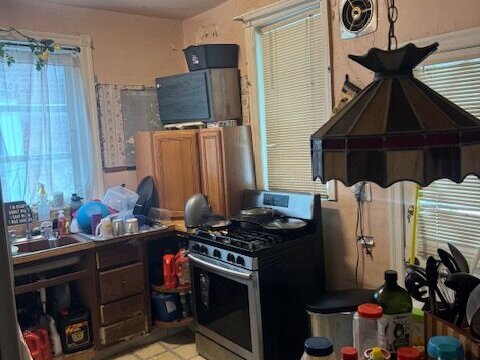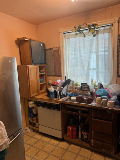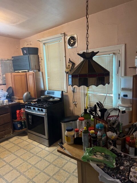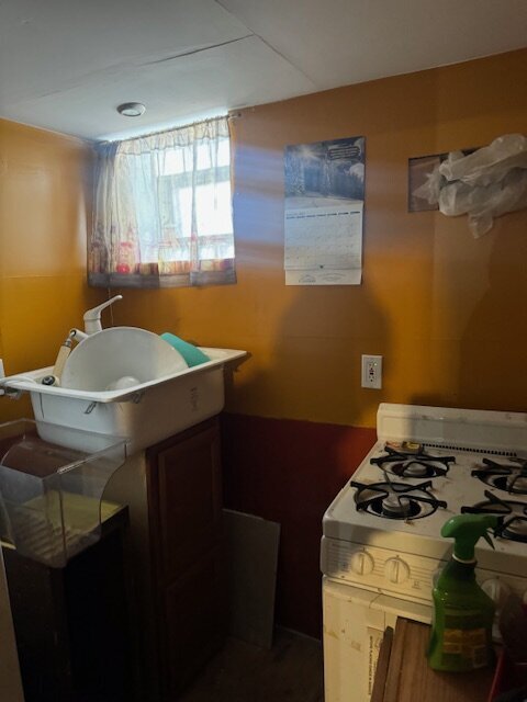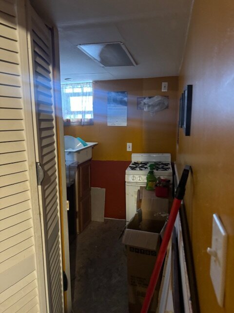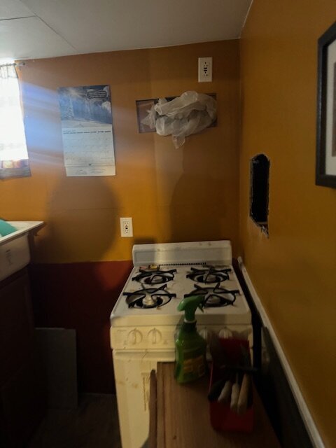 •Kitchen needs a complete gut. Some sign of ceiling leaking in the past