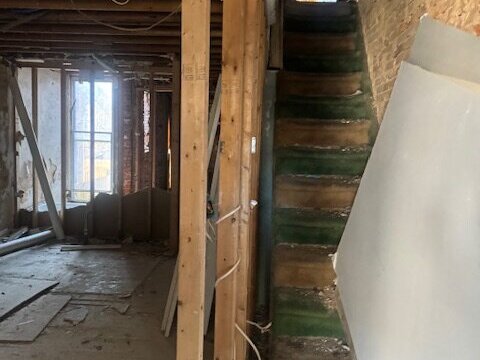 •Back of the house is inaccessible and there are missing windows on the first and second floor.