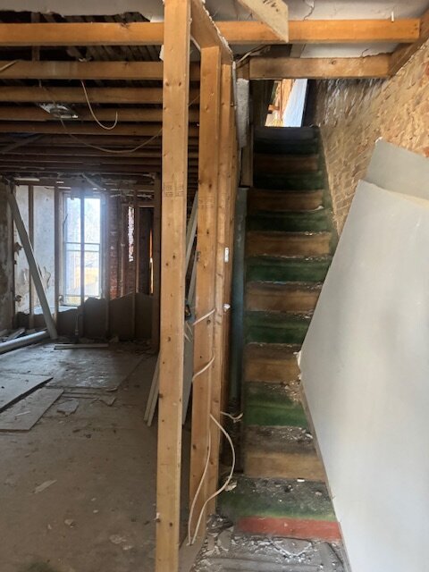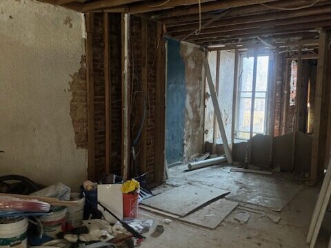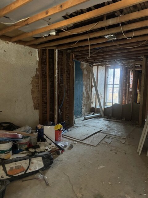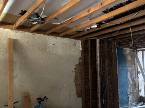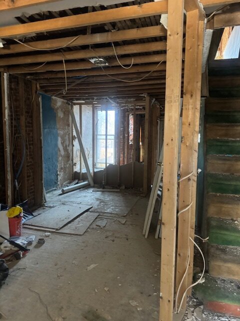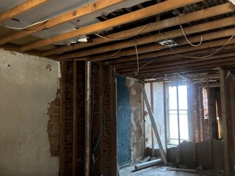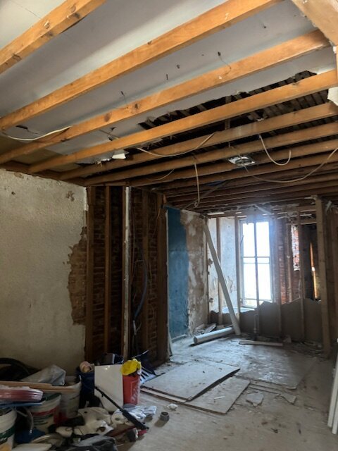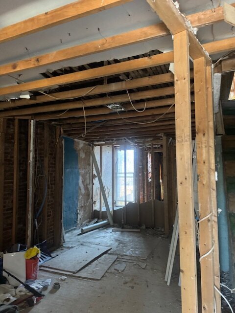 •Living and dining rooms have some framing done. Some cracking and damage to the walls to the front of the property
